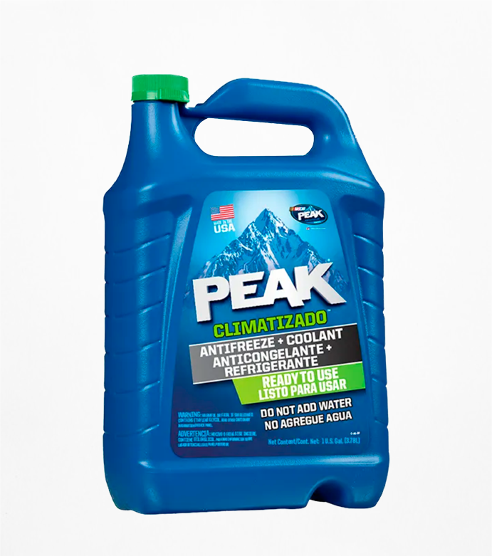 REFRIGERANTE PEAK 33% CLIMATIZADO es un anticongelante y refrigerante convencional, a base de etilenglicol (33%), formulado para utilizar en automóviles y vehículos ligeros. Máxima protección contra el congelamiento -18°C (0°F) y la ebullición 126°C (259°F). Incorpora inhibidores inorgánicos de la corrosión para proporcionar una protección de 6 vías.