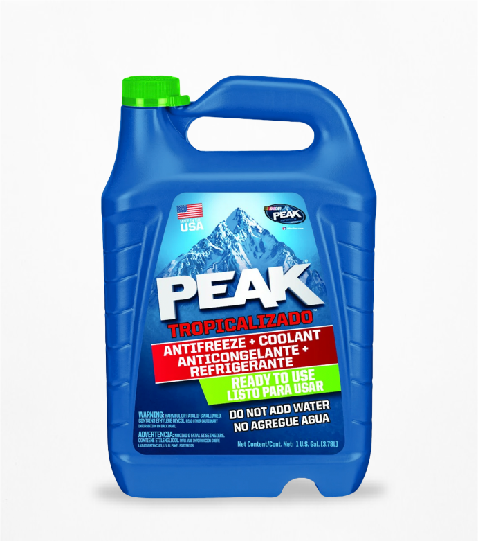PEAK Tropicalizado concentrado al 17% es un refrigerante + anticongelante listo para usar, el anticongelante oficial de la NASCAR obtienes la Máxima Protección contra la corrosión para así mantener tu auto en marcha. Está formulado con materias primas de excelente calidad a base de etilenglicol, aditivos e inhibidores de corrosión que cumplen y exceden las especificaciones de todas las marcas y modelos de los vehículos de fabricación Americana, Europea y Asiática.